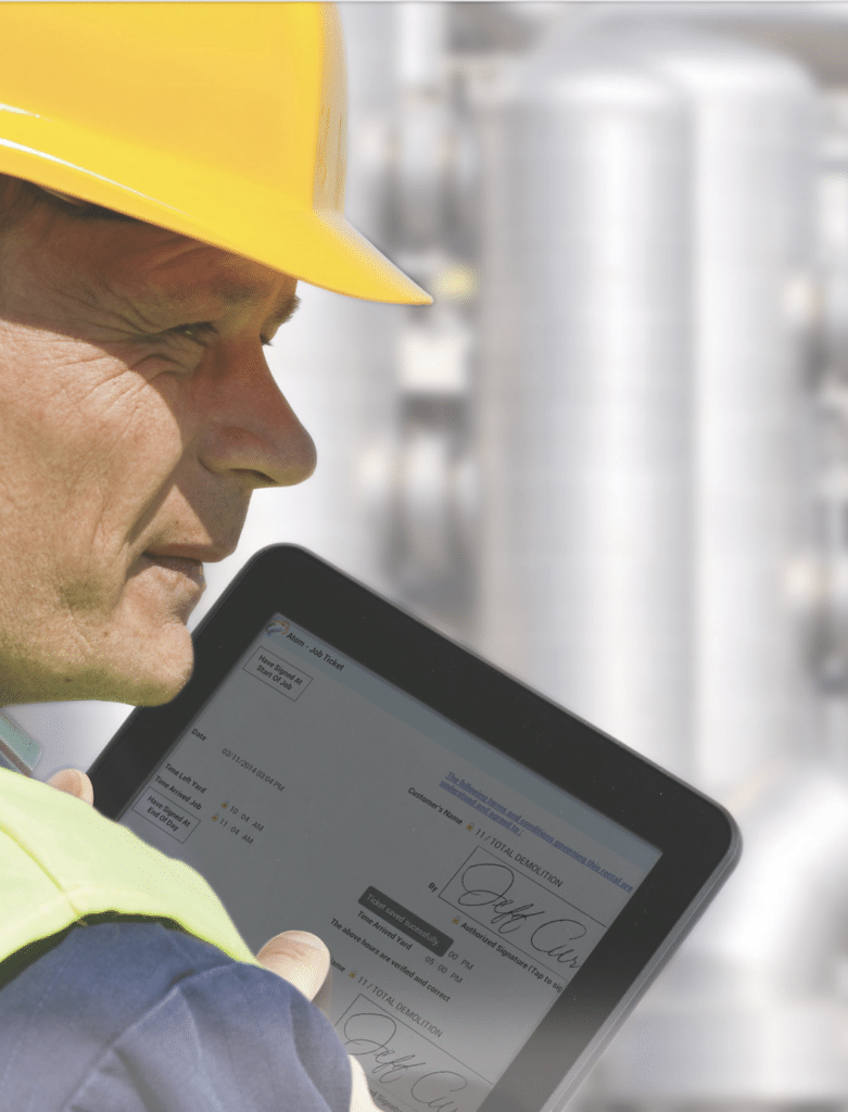 Atom is a comprehensive mobile fleet management app that allows fleet owners to manage operations from a tablet or smartphone. Dispatchers, sales managers, operators and service managers use Atom to create quotes and work orders, assign work to mechanics, enter labour, capture signatures on a job site, perform safety checklists and check in on the status of jobs for any given time period.