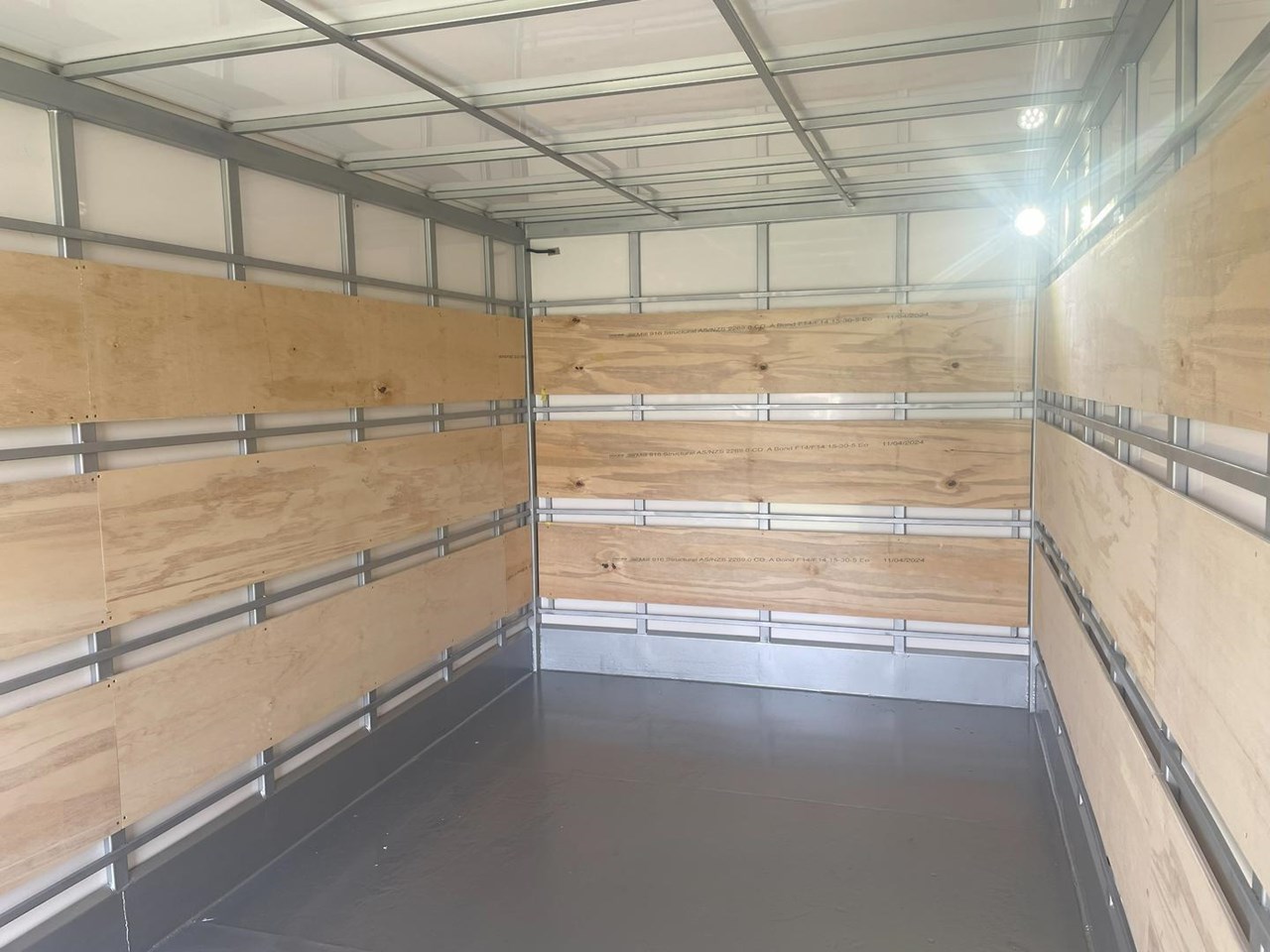 - Van Body: 5000mm x 2490mm x 3300mm OAH with 4 tie rails per wall