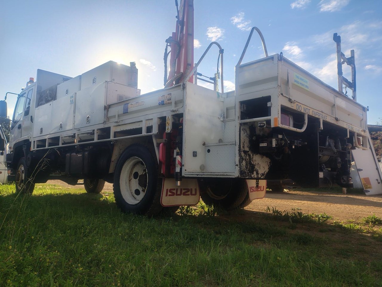 2005 Isuzu FSS550 4x4 Tray / Service Truck, ex government, tool boxes, Palfinger PC330 crane, runs and drives very well. Tool boxes and crane can be removed to make steel top tray if required