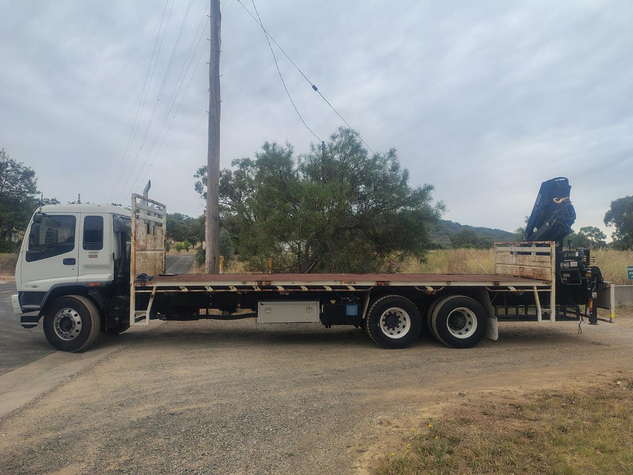 Also available 2008 Mitsubishi FV500 6x4 with rear mounted crane and running rope attached