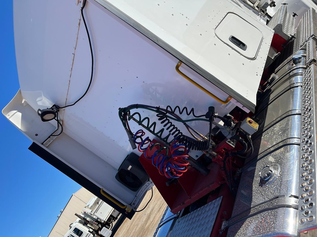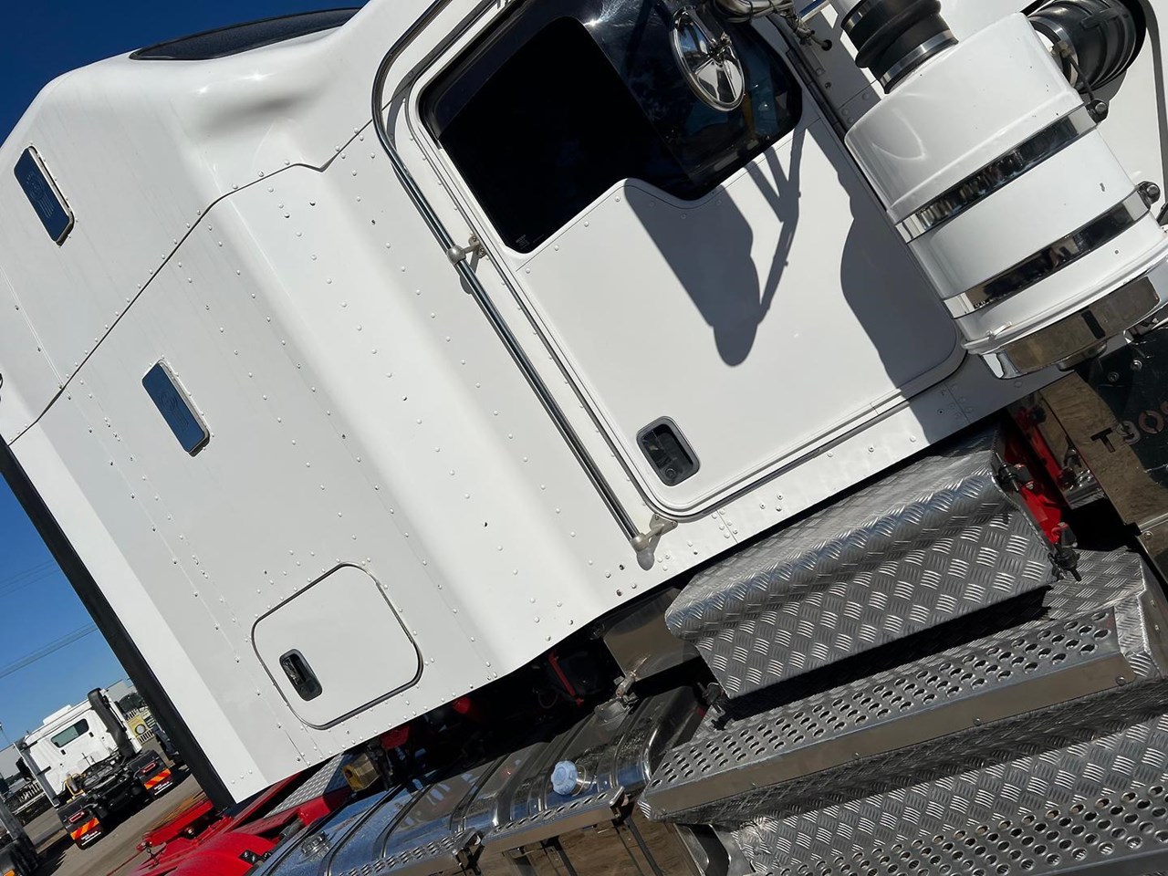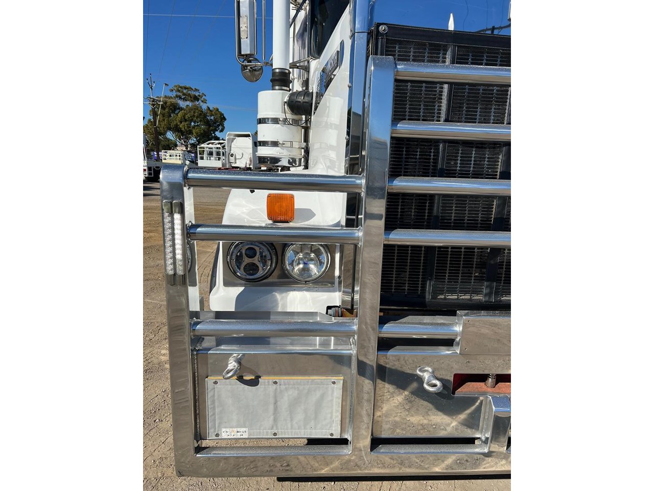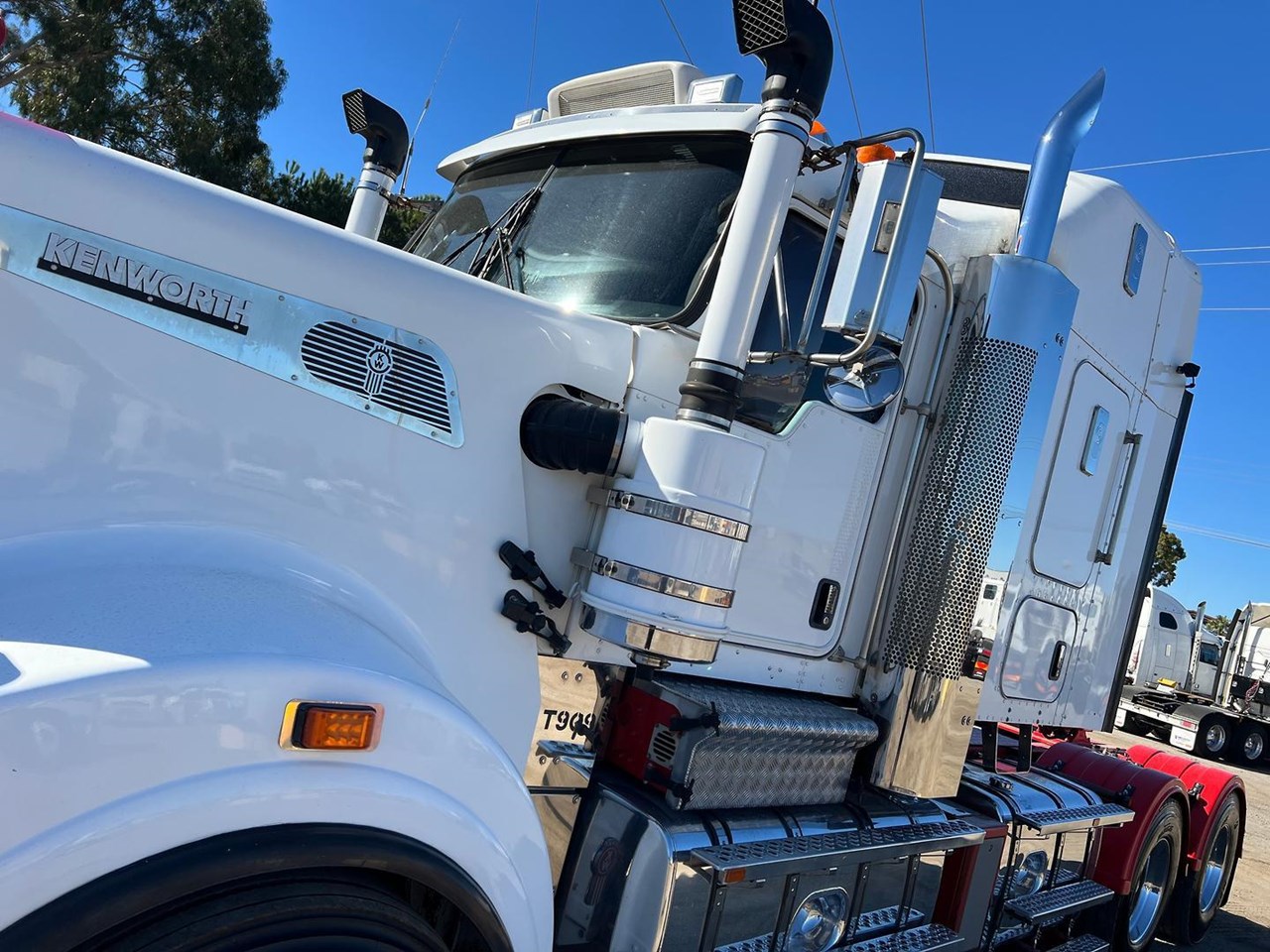 2017 Kenworth T909 6x4 prime mover,550 HP Cummins X15 Engine with 18 spd trans-RTL020918B-Dana D52-190 rear axles @ 4.56 on Neway AD246/10 air bag susp,Alloy wheels and FUPS Bull bar,Super singles on steer,50" high roof intergreated sleeper with Ecowind bunk air con,Diff and rear axle x lock,Roof mounted air con condensor,Rotating beacons,3.5" fixed QRTT,Alloy walkplate,Dolly pull in rear with air fittings,Alloy water tank,Rad/Cd, truck with a 155 ton GCM rating.