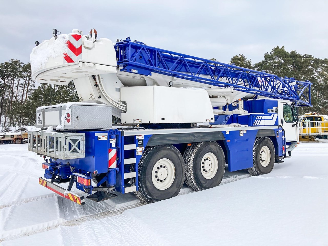 Additional Accessories: box for support timber, immobilizer, rear view camera at carrier rear, lighting package superstructure: two working floodlights at pivot section (electrically adjustable) and floodlights at the turntable (2 x laterally and 2 x rear)