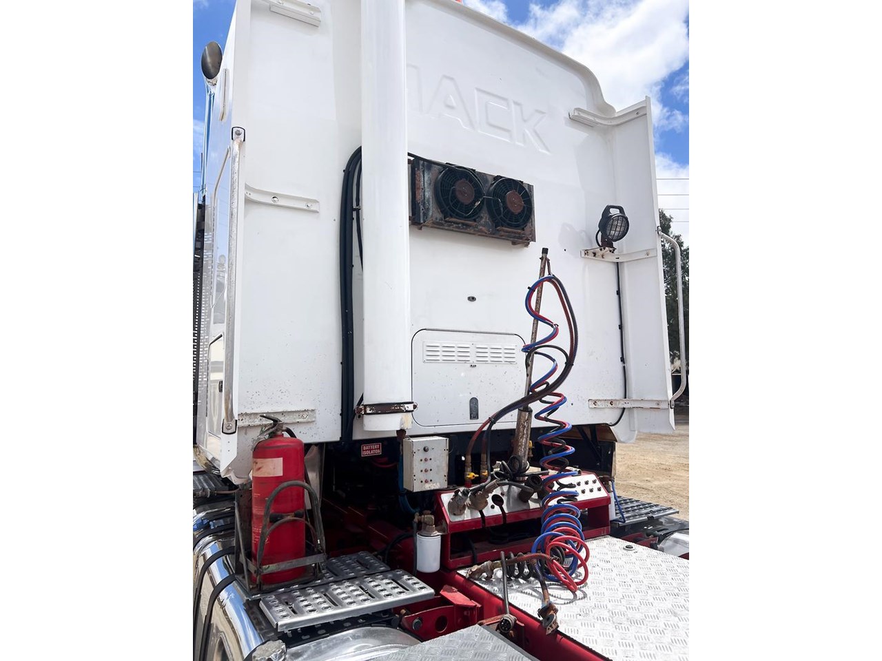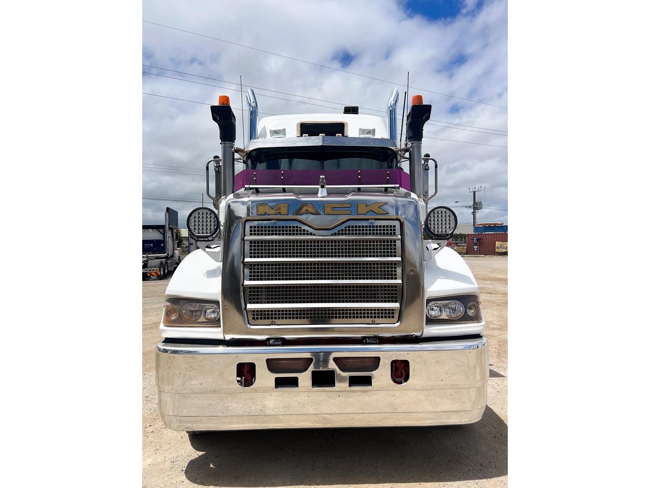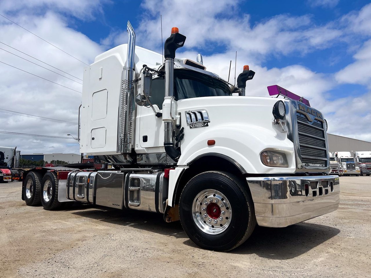 2014 Mack Titan 6x4 Prime Mover.600 hp 16 ltr Mack MP10 eng-Has engine rebuild history- with 18 spd trans-RTL022918B-Meritor RT52-185 rear axles on Mack spring susp,Alloy FUPS bumper and wheels,Super singles on steer,64" high roof intergreated sleeper with Icepack-2000 bunk air con,Alloy water tank,Diff and rear axle x lock,Alloy water tank,Rubber drive gaurds,PTO Hydraulics for side tippers,Dolly pull in rear with air and electric fittings,RAD/CD,UHF,Rotating beacons,Roof mounted air con is a solid heavy rated truck.
