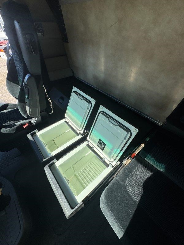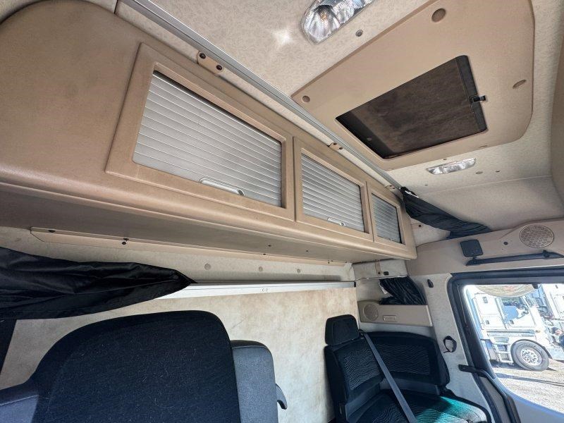 Drop-down bed with cupboards to rear of cab