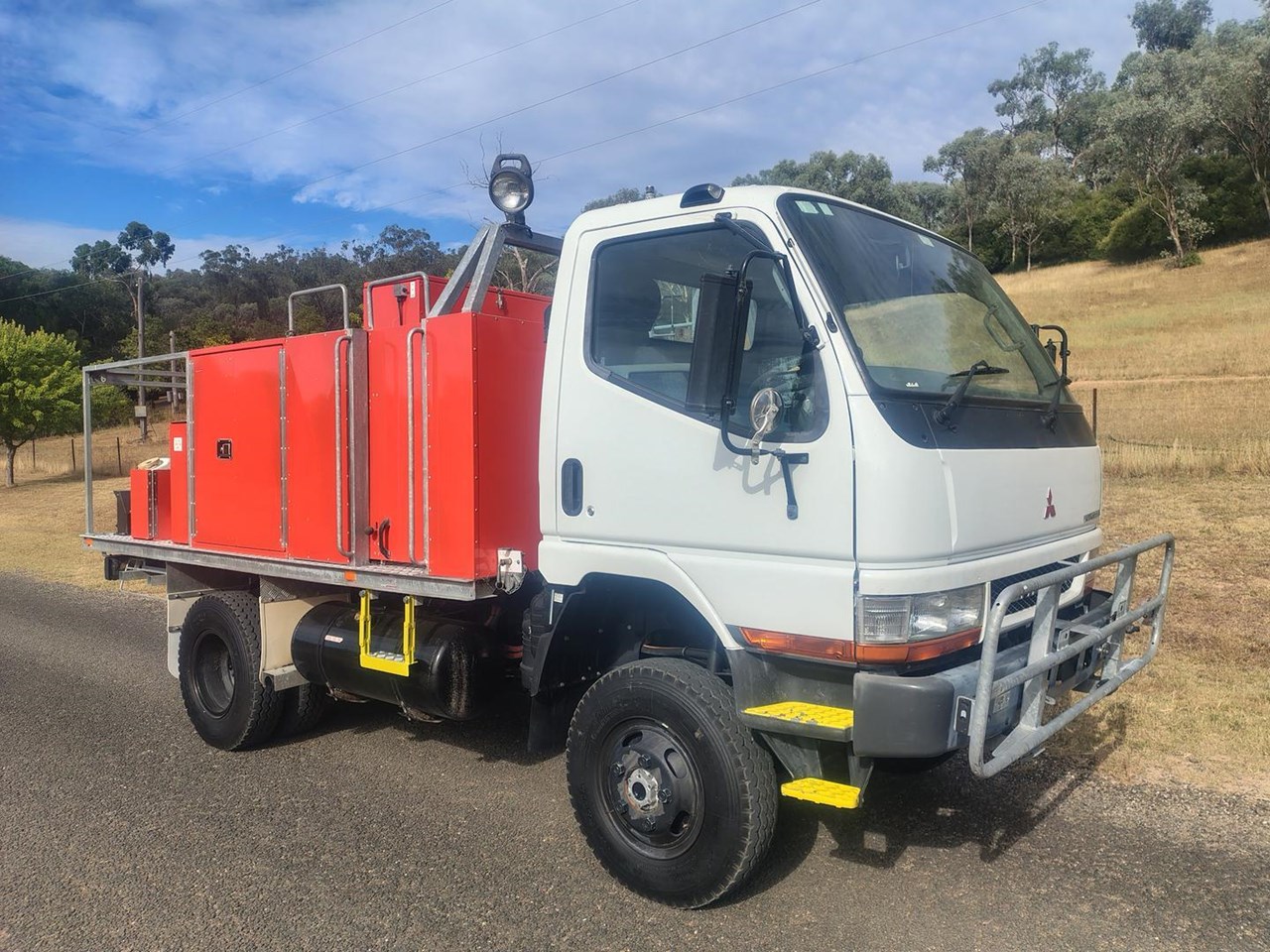 2007 Mitsubishi Canter 500/600 4x4 Fire Truck, Direct from NSW Rural Fire Service, very clean and tidy truck, Factory turbo diesel, runs and drives very well, 4x4 high and low range. Can be sold as a fully equipped Fire Truck or as a Tray top Truck.